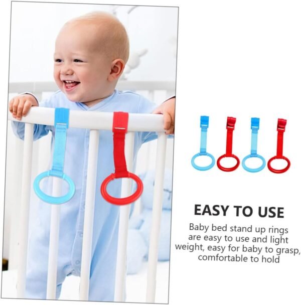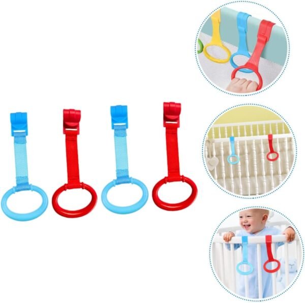 Enhance your child’s mobility skills with the Minkissy 4Pcs Bed Stand Rings. This set of four lightweight pull rings is crafted to provide support as your child learns to stand and walk with ease. The rings are constructed from sturdy cloth and plastic materials, offering both durability and comfort. With their bright and engaging colors, these rings not only aid in walking but also promote early color learning for your little one.