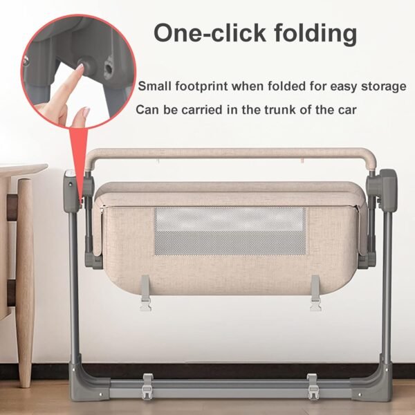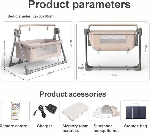 Available in calming colors like gray, green, pink, and khaki, this cradle not only soothes your infant with gentle music but also allows parents to save space without compromising on style or comfort. Enhance your baby’s sleep experience with this remarkable electric swing that adapts to your family’s lifestyle.