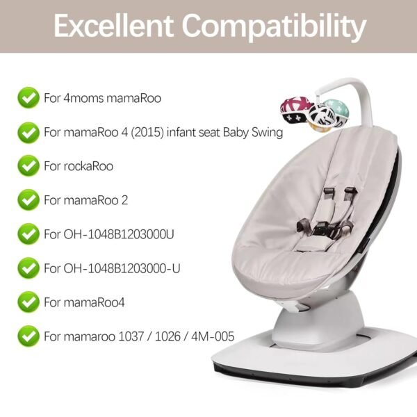 Compatibility: Exclusively designed for 4moms mamaRoo 2/4, rockaRoo, and select models (MamaRoo 2015, 1037, 1026). Not compatible with mamaRoo 3 or Ingenuity swings.