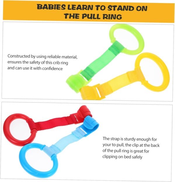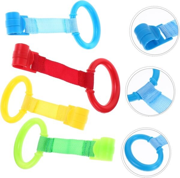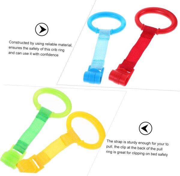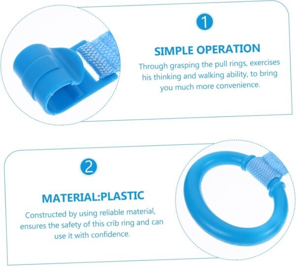 These pull rings are ideal for playpens and beds, promoting confidence in standing and walking independently. No screws or tools are needed—simply clip the rings onto your play space for easy access. Their lightweight and compact design ensures portability, making them perfect for travel.