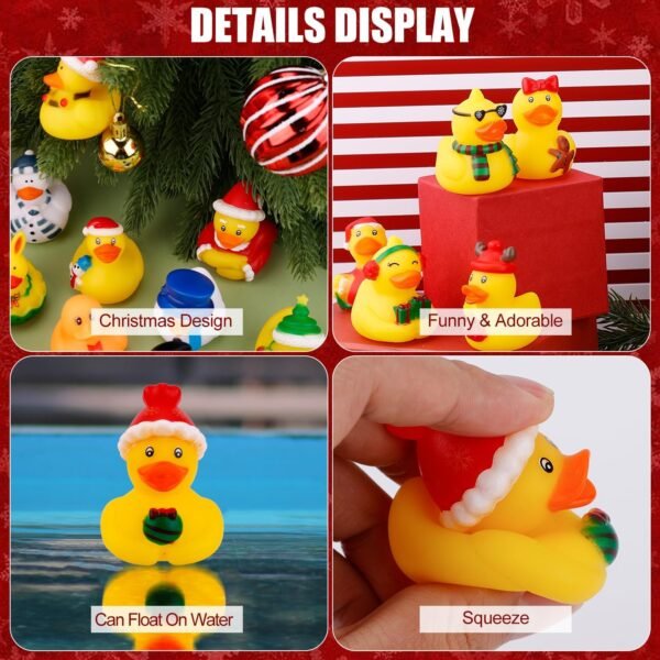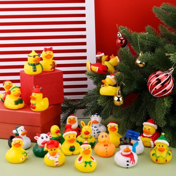 Celebrate the festive season with our delightful set of 24 Christmas Rubber Ducks! Each duck features adorable designs, including Santa Claus, snowmen, and Christmas trees, creating a joyful holiday atmosphere. Made from durable rubber, these charming decorations are built to last and withstand winter fun. Ideal for kids’ parties, holiday decor, or as a unique gift, these rubber ducks are perfect for spreading cheer during Christmas and beyond!