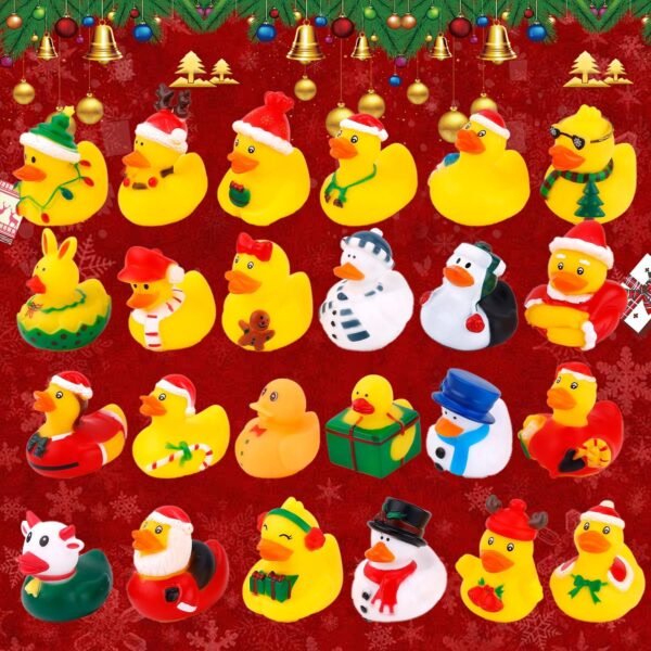 24pcs Colorful Christmas Rubber Ducks – Cute Bath Toys & Party Favors