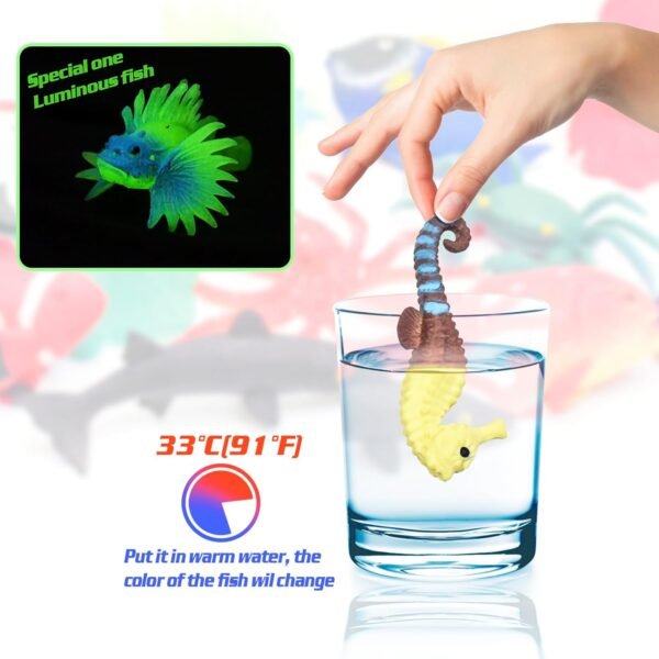 Dive into fun with our vibrant set of 10 color-changing sea animal toys! Perfect for kids aged 3 and up, these magical figures transform in warm water, providing endless entertainment. Made from safe TPR rubber, they are perfect for bath time or as delightful cake decorations, classroom rewards, or party favors. Elastic and squeezable, they also serve as stress-relief toys. Make playtime exciting and educational with these engaging ocean creatures!
