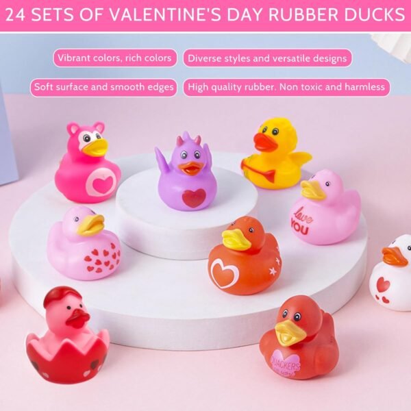 - Festive Design: Includes 24 Valentine’s Day-themed rubber ducks, perfect for celebrations and decor.