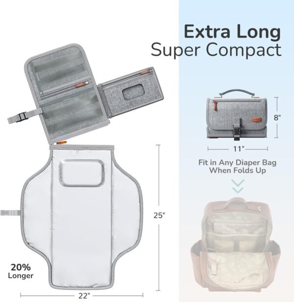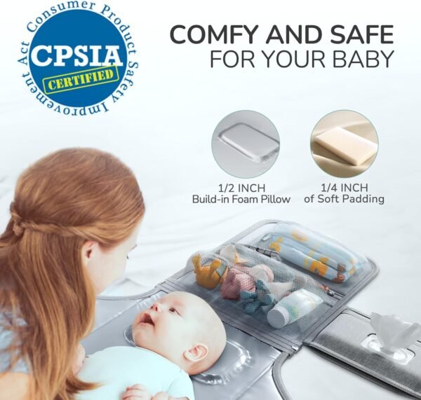 Introducing the Alatino Portable Changing Pad, designed with modern parents and babies in mind. Crafted from premium materials, this portable pad ensures safety and comfort. Its CPSC-certified design is free from lead and phthalates, giving you peace of mind while changing your little one.
