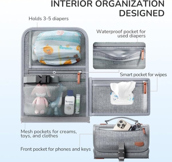 This is really useful. This is compact and stylish. It includes pocket for wipes, diapers. The changing pad is soft and easily detachable. I really like the zip pocket to store extra bags and cream or lotion.