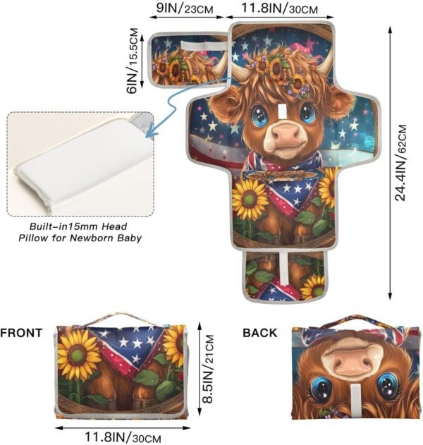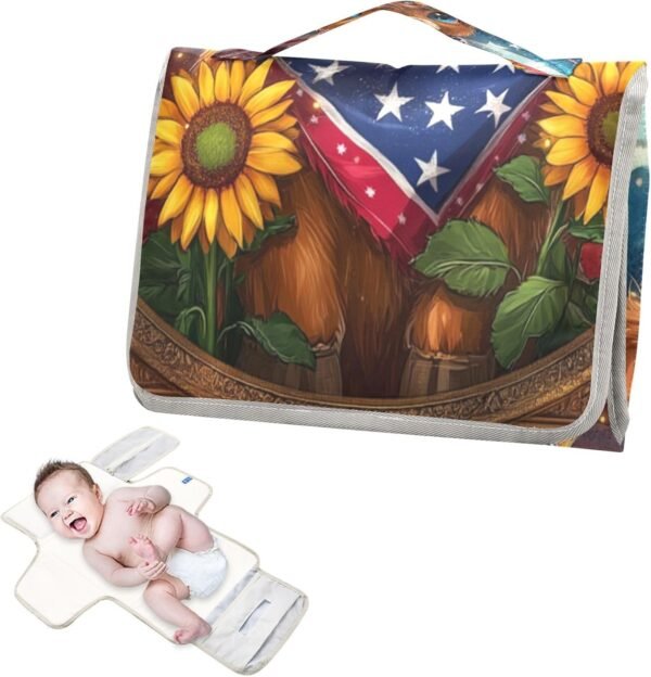 Portable Waterproof Baby Changing Pad with Sunflower Cow Bandana Design