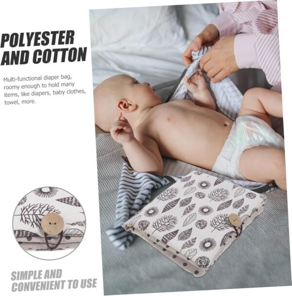Introducing our versatile Diaper Storage Bag: the perfect solution for busy parents seeking organization and convenience. Measuring at 35.50×21.20×1.00 cm (13.95×8.33×0 inches), this compact yet spacious bag is crafted from durable and breathable polyester and cotton, ensuring it withstands daily use.