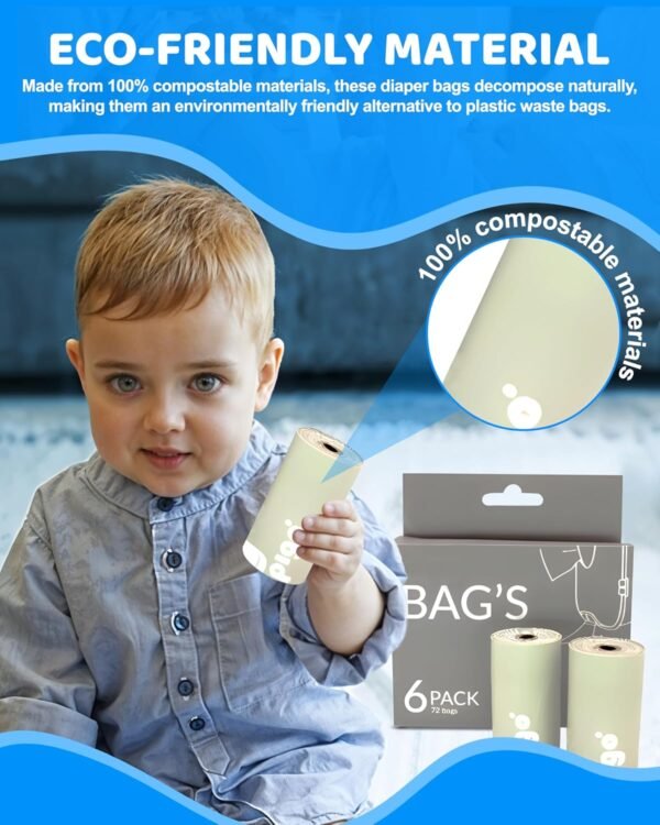 Introducing Keepigo Diaper Disposable Bags, the essential choice for eco-conscious parents! Made from biodegradable, compostable materials, these bags offer a sustainable solution for handling baby diapers. Each pack contains 72 leak-proof and odor-free bags across 6 convenient rolls, designed for easy access and portability.