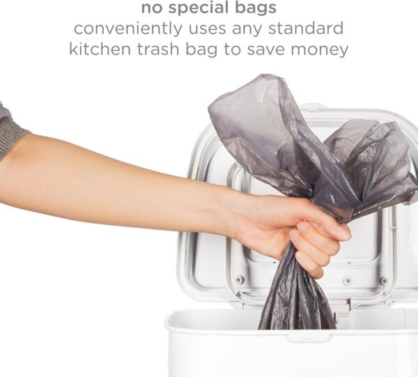 Key features include advanced anti-odor control technology that locks in unpleasant smells, ensuring a fresh and clean environment. The ergonomically designed magnetic lid allows for easy, one-handed access, streamlining the disposal process. Plus, the Ubbi pail is compatible with standard tall kitchen trash bags—no need for special liners, saving both time and money.