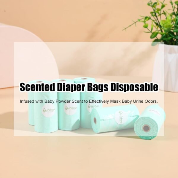 The bags are infused with a delightful fresh powder scent that effectively masks unpleasant odors, keeping your environment pleasant whether you’re changing diapers at home, during strolls, or while traveling. Designed with functionality and style in mind, Usboo diaper disposal bags add a touch of convenience to your diaper-changing routine.