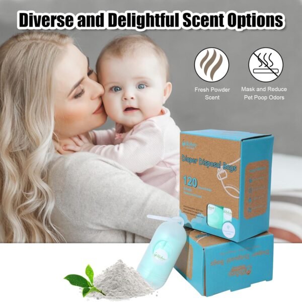USBOO Disposable Diaper Bags – 120 Pack with Fresh Powder Scent & Dispenser
