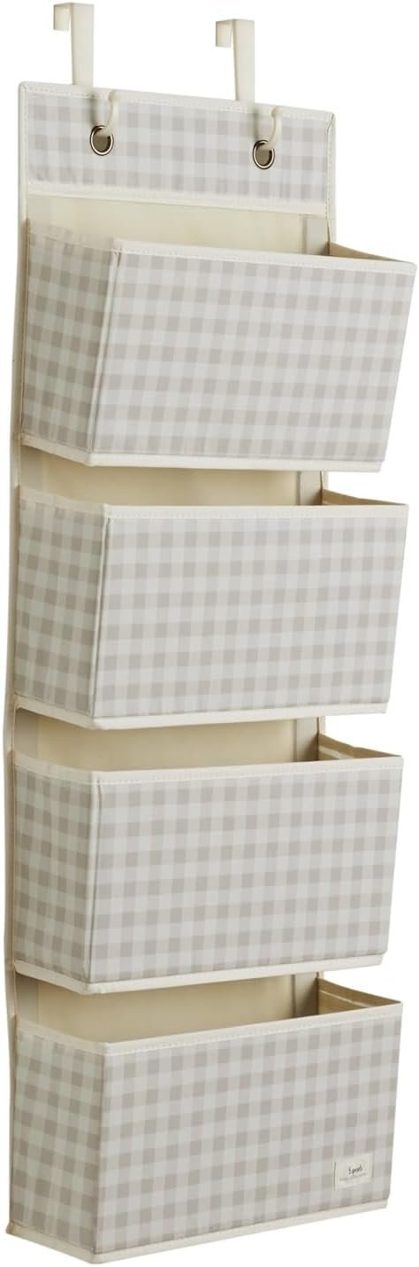 I picked this up as an extra storage solution for my little one’s bedroom, where space is at a premium. We were easily able to sling this over his door using the included hooks, which fit the antique bedroom door perfectly despite it being a little slimmer than a traditional, modern door. If you don’t want it over the door, it can also fit on most closet rods as a space-saving option.The capacity of the four pockets is substantial, as they fold out quite a bit. The terrazzo pattern was a very neutral option to use and is versatile no matter whose room it is.I’ve liked all of the 3 Sprouts kids’ items that we’ve picked up, so not surprised that this is also a winner.