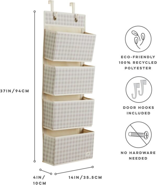 3 Sprouts Over the Door Organizer – Beige Baby Storage & Toy Holder with 4 Pockets