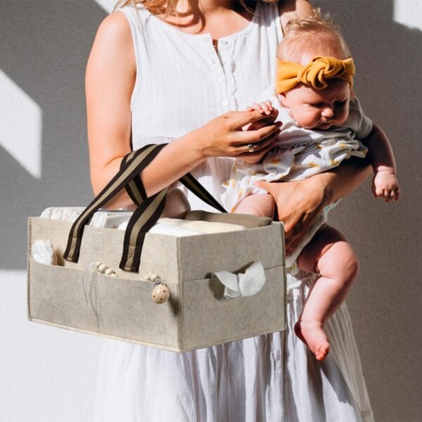 Introducing our Baby Diaper Caddy Organizer, the essential nursery storage solution for newborns. This versatile caddy keeps all your baby essentials neatly organized and within reach. Crafted with high-quality materials, it’s both stylish and practical, making it a must-have for new parents. Streamline your diaper changing routine with this convenient and chic storage solution.