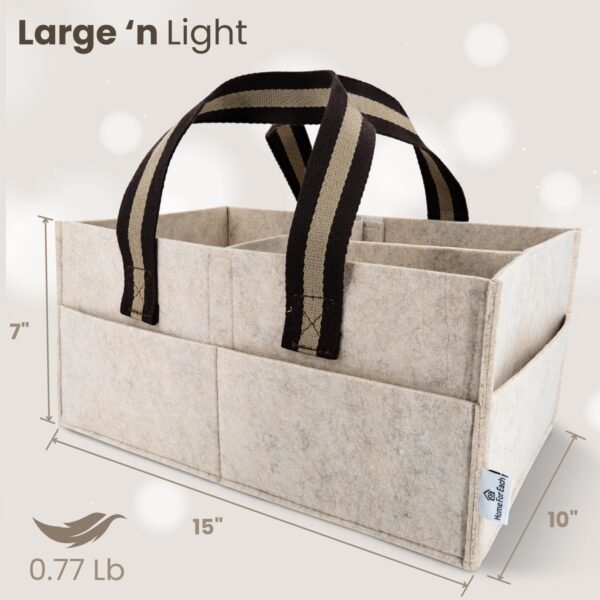 Whether you need a nursery storage solution, a portable car organizer, or a handy pumping station, this diaper caddy has you covered. Its lightweight design and sturdy handle make it easy to transport, ensuring you have everything you need within arm’s reach—whether at home or on the road.