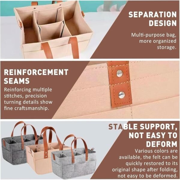 - Sturdy & Durable: Crafted from high-quality felt with strong leather handles.