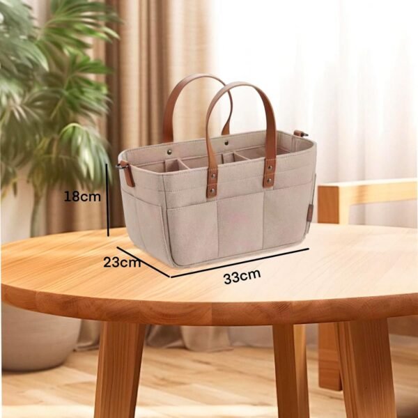 Equipped with two removable dividers, this felt caddy adapts to your storage needs. Whether you’re at home or on the go, its multi-compartment layout keeps items neatly organized and easily accessible. Crafted from high-quality felt, it maintains a sturdy structure, while the exquisite leather handles add durability and style.