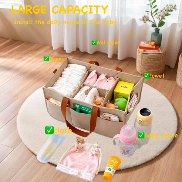 Discover the Putska Baby Diaper Organizer Caddy—a must-have for any nursery! Ideal for baby showers, this stylish and versatile storage solution combines functionality with aesthetic appeal. Featuring an open design for easy access and visibility, it effectively stores diapers, wipes, creams, bottles, and more. With its durable felt construction and exquisite leather handles, it’s both portable and foldable, making it perfect for home or travel.