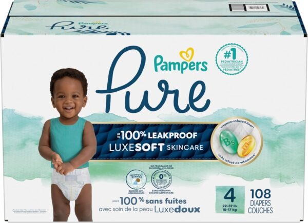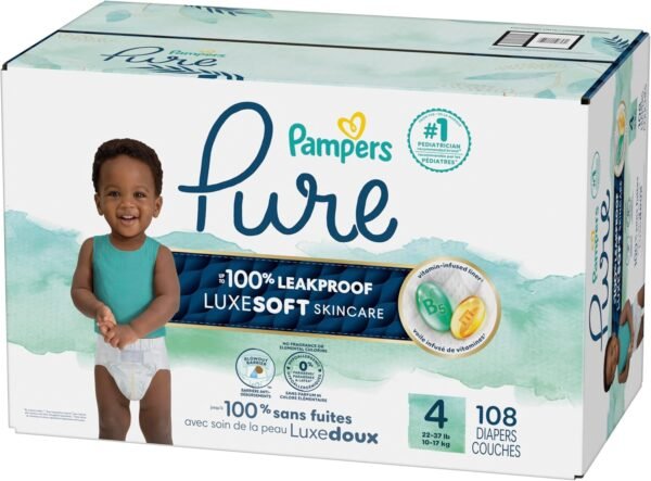 Pampers Pure Protection Diapers Size 4 (22-37 lbs) – 108 Count, Hypoallergenic, Leakproof