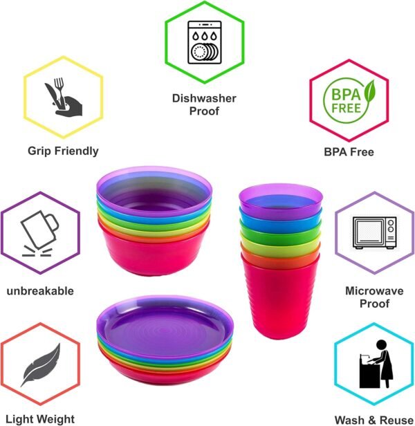 Crafted from high-quality, BPA-free plastic, this dinnerware set is not only safe but also microwavable and dishwasher-safe, making it incredibly convenient for busy parents. Your child can enjoy their favorite meals at home, on picnics, or during sleepovers with confidence, knowing they’re using durable, break-resistant items.