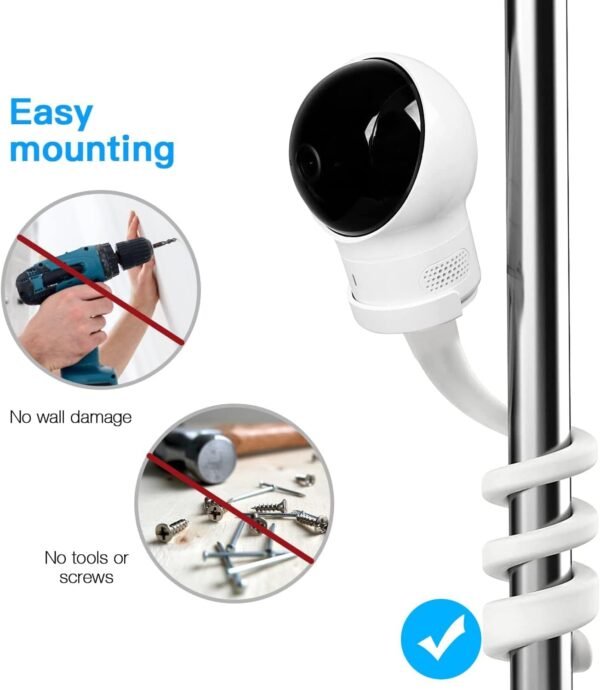 Enhance your baby monitoring experience with our Flexible Twist Mount, specifically designed for most baby cameras. Its adjustable 16.5-inch design allows for versatile positioning on cribs, walls, or shelves, ensuring the best view of your little one. With tool-free installation, you can quickly and securely attach your monitor in seconds. Lightweight and portable, it’s perfect for families on the go. Enjoy peace of mind with this durable and reliable solution for all your monitoring needs.