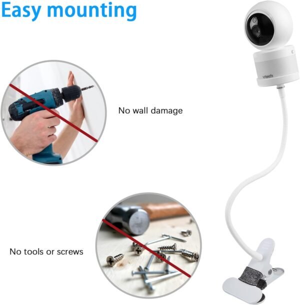Upgrade your baby monitoring experience with this versatile clip holder, designed specifically for VTech models VM5463, RM5764HD, RM5864HD, and more. Enjoy effortless installation—no tools or wall damage required. The flexible gooseneck arm allows for easy adjustments, ensuring a perfect view of your little one. Made from high-quality materials, this holder securely supports your baby monitor for reliable peace of mind. Plus, it comes with a 3-month warranty for extra assurance!
